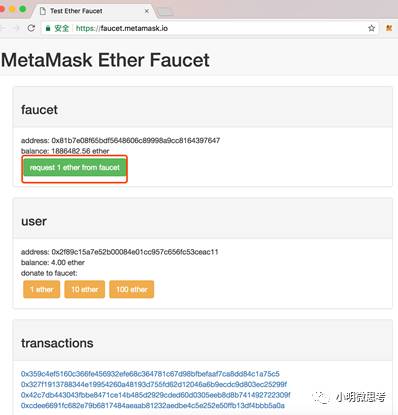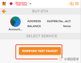在测试网络中获取以太币不需要付费,直接点击“BUY”,进入获取测试网络以太币界面,点击“ROPSTEN TEST FAUCET”,进入挖矿界面,每次最多挖去13个测试网络以太币。