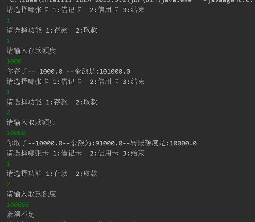 System.out.println("请选择哪张卡 1:借记卡 2:信用卡 3:结束");
