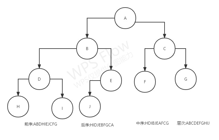 - 从根结点出发,先向左,再向右的方向访问。(左根右)