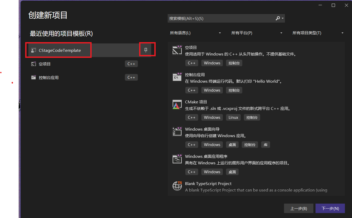 你也可以将你的模板固定在项目创建的左页面,如下图。