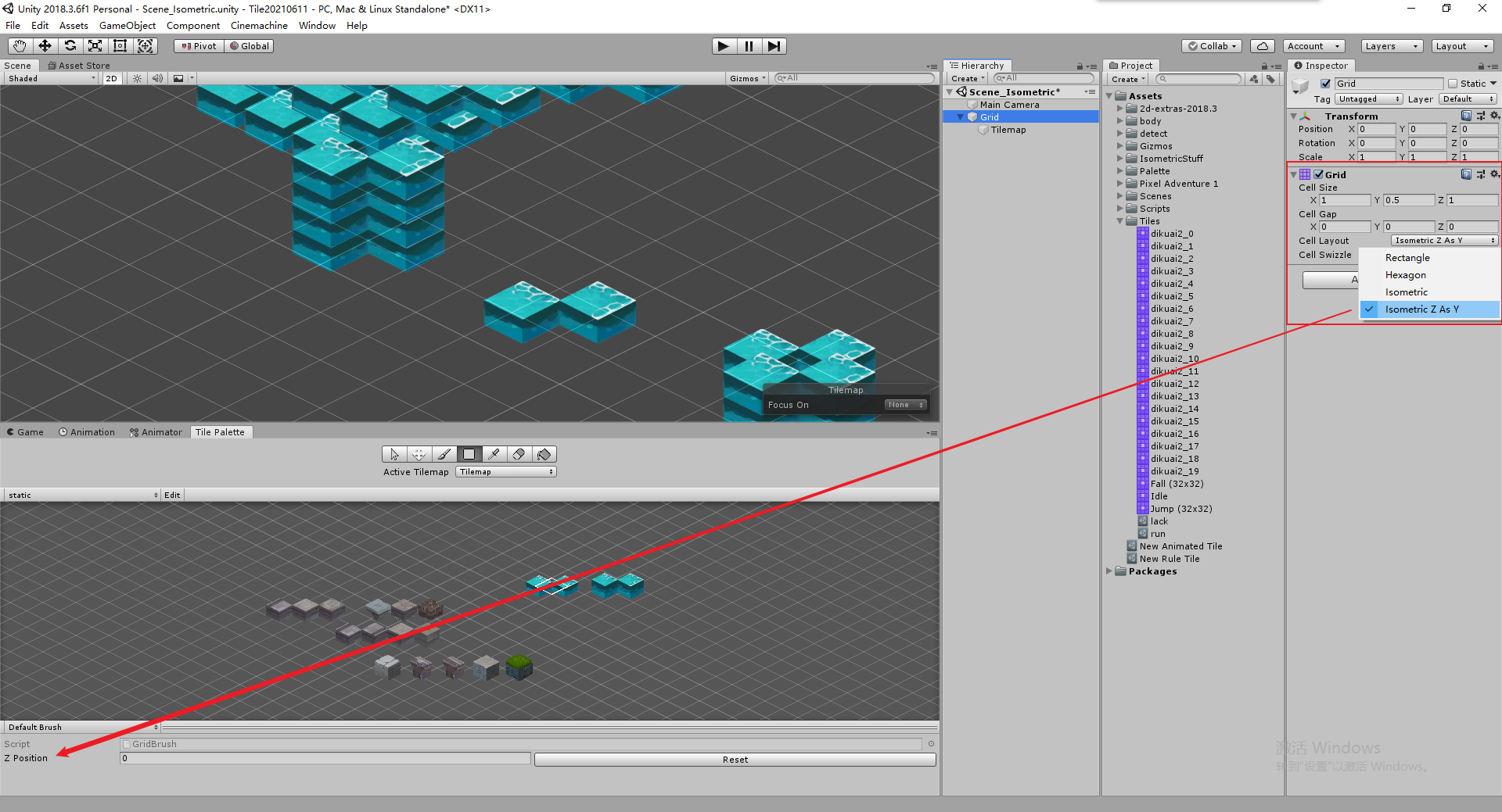 当Grid CellLayout 调成 Isometric Z as Y 时,可对Zposition做改变。(快捷键 + -)