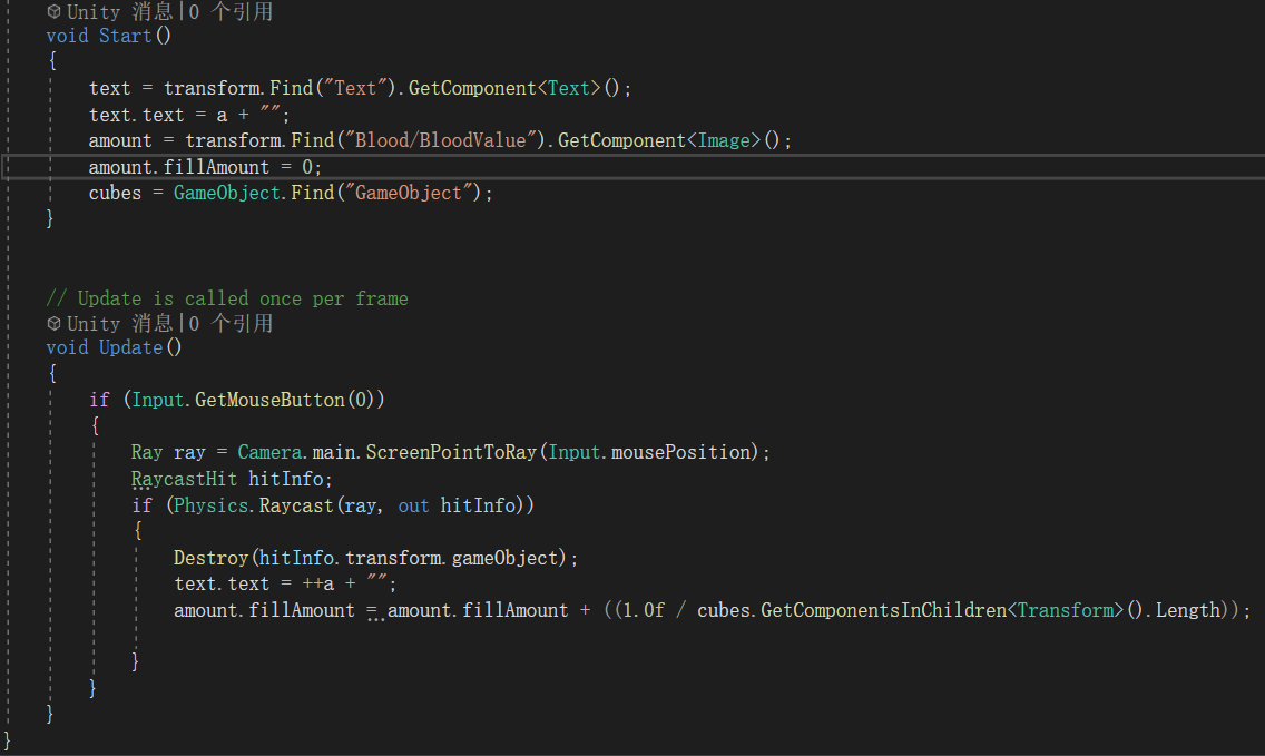 主要内容:实现点击物体后,销毁物体,记录销毁数量,进度条做出相应改变(如下图)