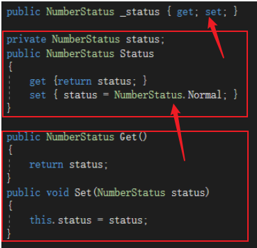 { get; set; }相当于方法的使用,public后不会像属性一样显示在面板上。