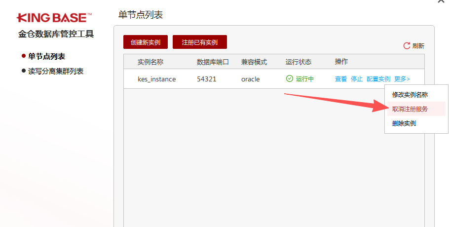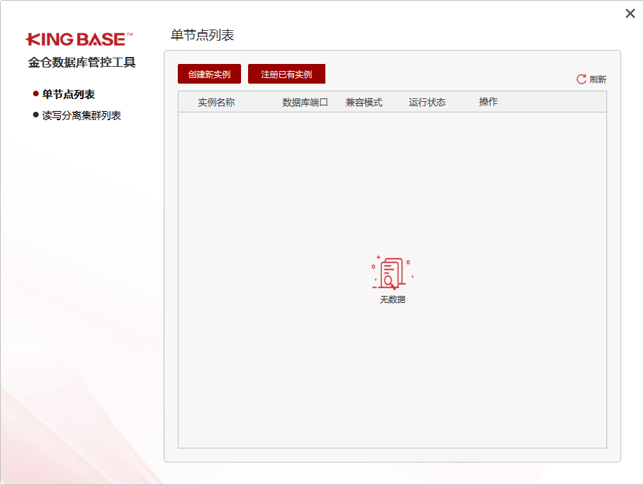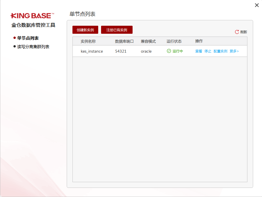安装完成后,会自动运行管控工具。直接选择单节点列表,然后创建新实例。