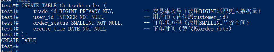 order_status SMALLINT NOT NULL, -- 订单状态码(改用SMALLINT节省空间)