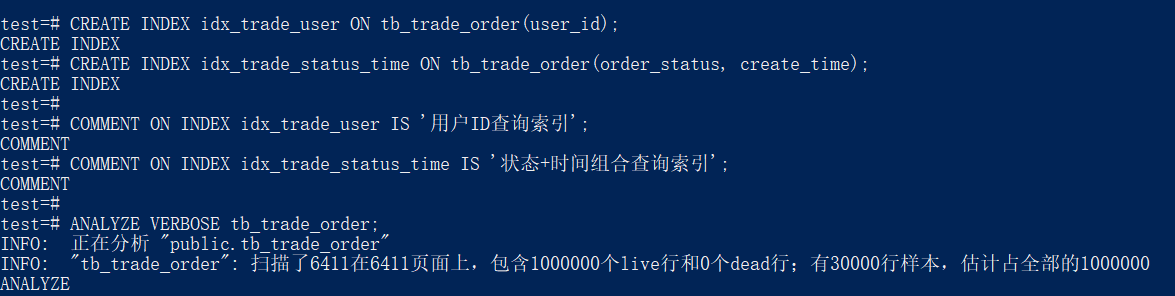 COMMENT ON INDEX idx_trade_status_time IS '状态+时间组合查询索引';