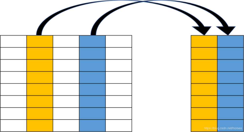 SELECT 子句用于指定需要查询的字段,可以包含表达式、函数值等。SELECT 在关系操作中被称为投影(Projection),看下面的示意图应该就比较好理解了。