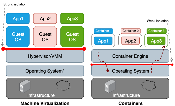 由此可见,容器并不是真正的“沙盒”,也并不是轻量化的虚拟机。有没有可能为容器增加一个更安全的边界,尽可能的与主机操作系统隔离,做到类似虚拟机的强隔离,使其成为真正的“沙盒”?