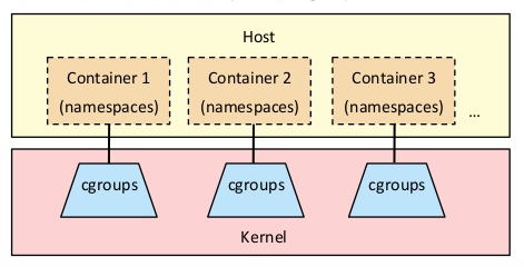 同时使用 namespace 和 cgroup 使得我们可以在一台主机上安全地运行多个应用,并且每个应用都位于隔离的环境中。