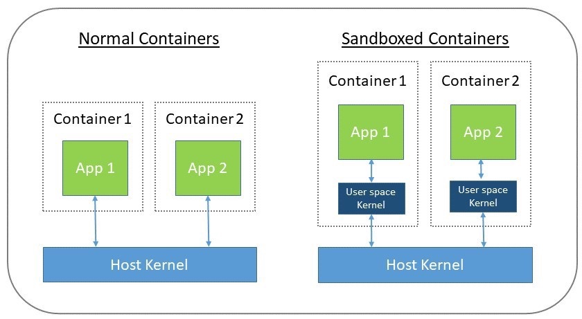 答案是有,就是沙盒容器。这种容器就像虚拟机一样有自己的内核,这层内核成为用户空间内核。这层内核要保持容器的轻量级,使用现代编程技术编写,本身非常轻,仅用于作为容器和主机之间的强隔离层。