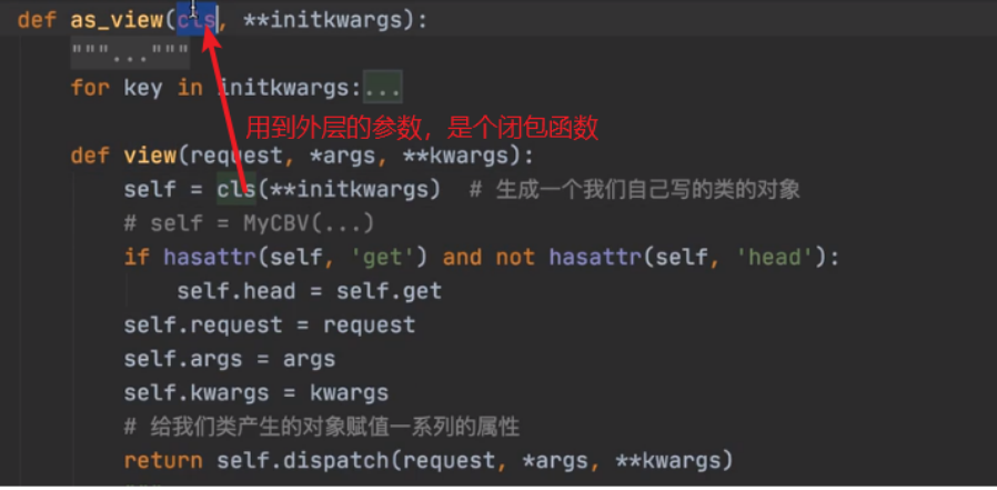 views.MyLogin.as_view()变形---------->views.view闭包函数的函数名,变形后的结果与FBV一模一样,所以CBV与FBV在路由上的本质是一样的。