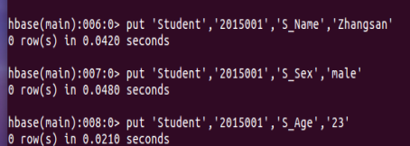 2. 用Hadoop提供的HBase Shell命令完成相同任务: