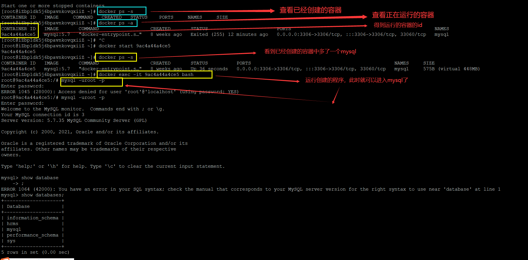 再一次执行docker ps -s命令,结果如图4,说明mysql启动成功。