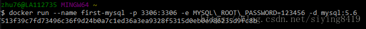 docker run –name mysql -p 3306:3306 -e MYSQL_ROOT_PASSWORD=123456 -d mysql:5.6