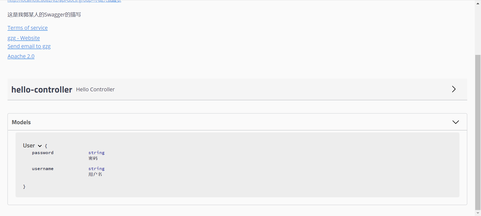 package com.gzg.apitest_gzg.config; import org.springframework.context.annotation.Bean; import org.springframework.context.annotation.Configuration; import springfox.documentation.service.ApiInfo; import springfox.documentation.service.Contact; import springfox.documentation.spi.DocumentationType; import springfox.documentation.spring.web.plugins.Docket; import springfox.documentation.swagger2.annotations.EnableSwagger2; @Configuration @EnableSwagger2 public class SwaggerConfig { //配置了Swagger的Docket的bean实例 @Bean public Docket docket(){ return new Docket(DocumentationType.SWAGGER_2) .apiInfo(apiInfo()); } private ApiInfo apiInfo(){ Contact contact=new Contact("gzg","www.baidu.com","hero@qq.com"); return new ApiInfo("Api Documentation", "Api Documentation", "1.0", "urn:tos", contact, "Apache 2.0", "http://www.apache.org/licenses/LICENSE-2.0"); } }