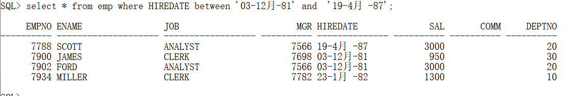 between也能适用于介于日期之间的查询,但是日期需要加上单引号