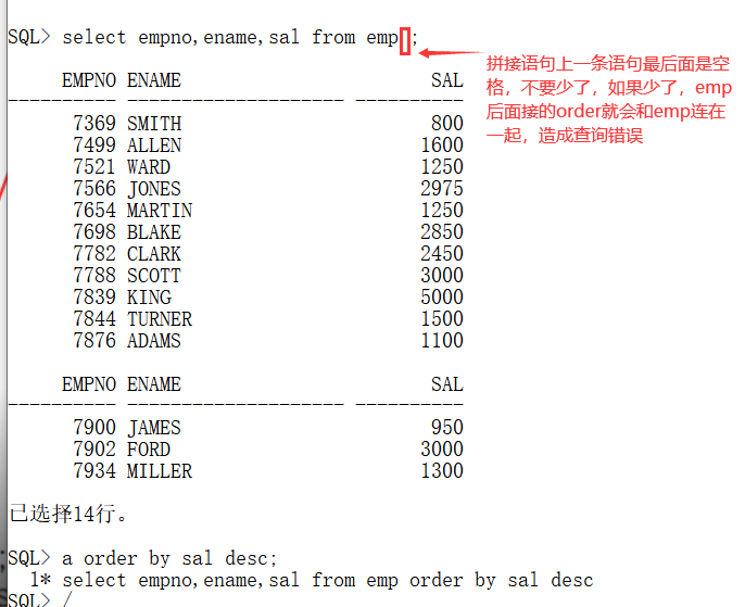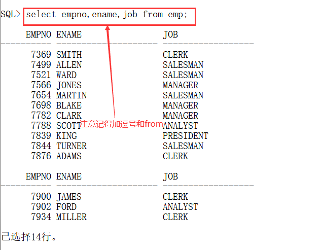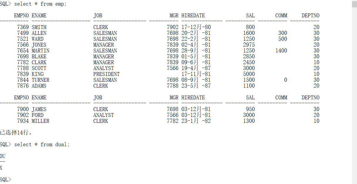 看上面的两张表可以看出选择emp表是将很多相同列名的行的第一个列改成了别名而选择dual表却是只改变了一个列,这是为什么?