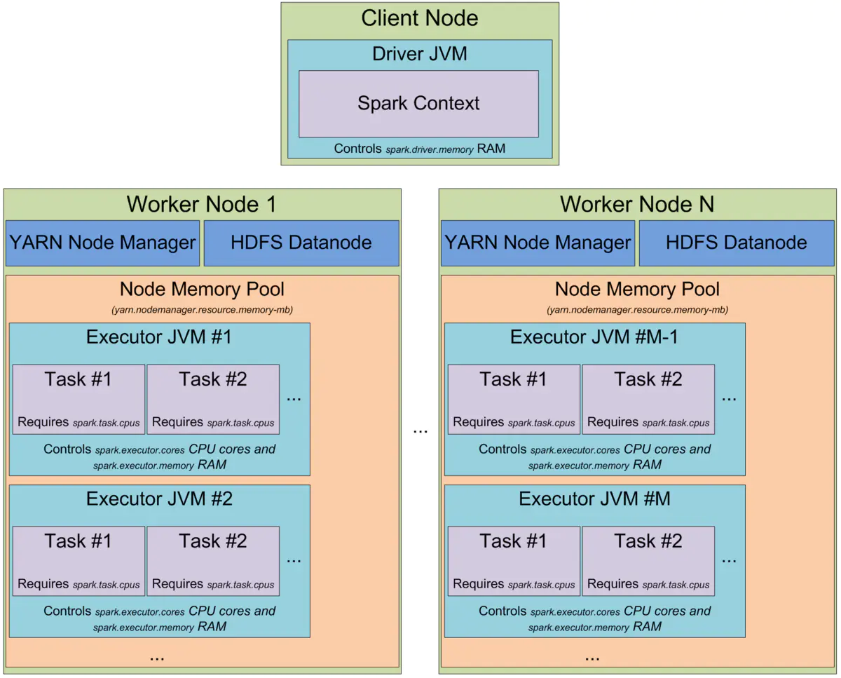 Hadoop Yarn: 主要是指Yarn中的ResourceManager - Worker: 集群中任何可以运行Application代码的节点,在Standalone模式中指的是通过slave文件配置的Worker节点,在Spark on Yarn模式下就是NodeManager节点