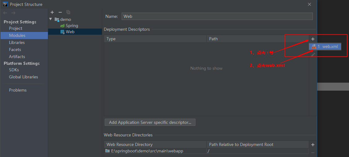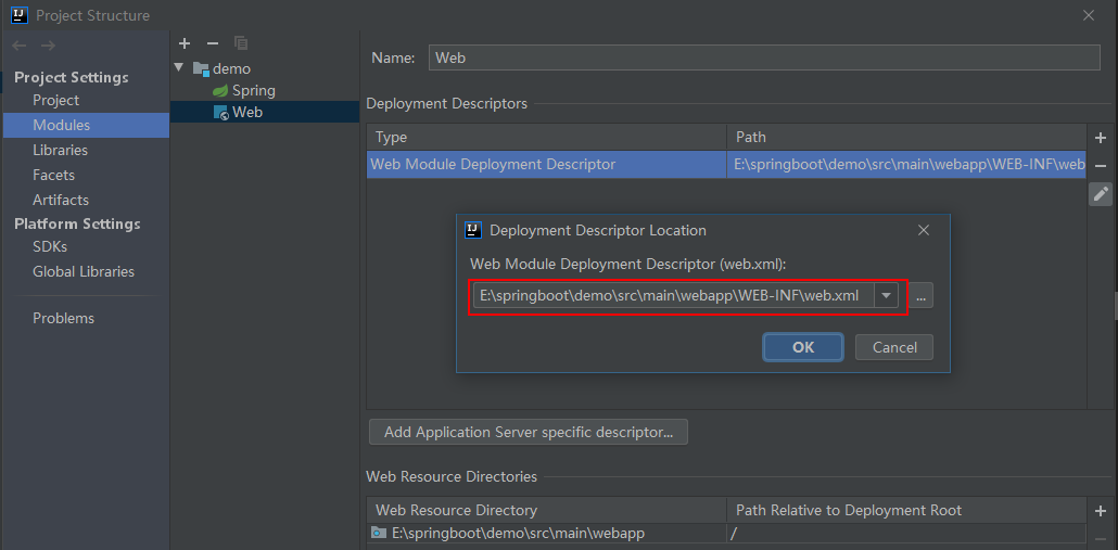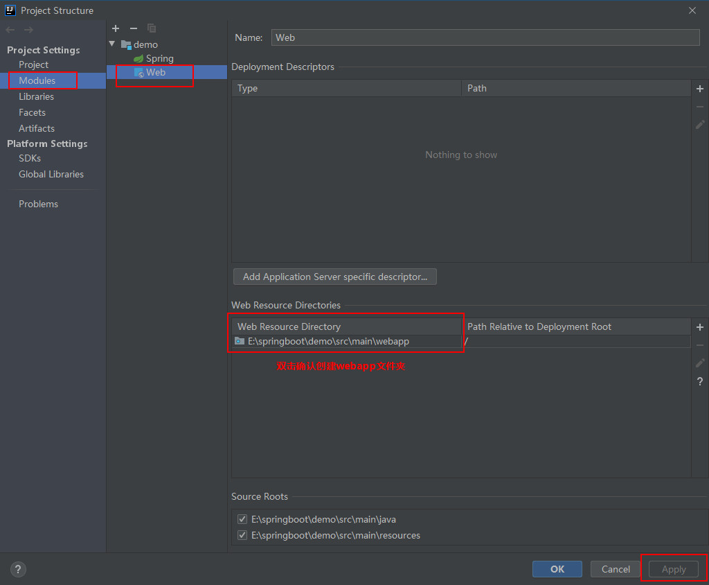 双击Web Resource Directory,在弹出窗口点击确认,创建webapp文件夹