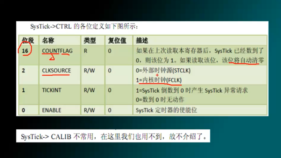 cortex-M3的内核中包含一个systick时钟。systick为一个24位递减计数器systick设定初值并使能后每经过1个系统时钟周期,计数器就减一/计数器到0时systick计数器自动重装初值并继续计数同时内部的countflag标志会置位触发中断(如果中断使能)。