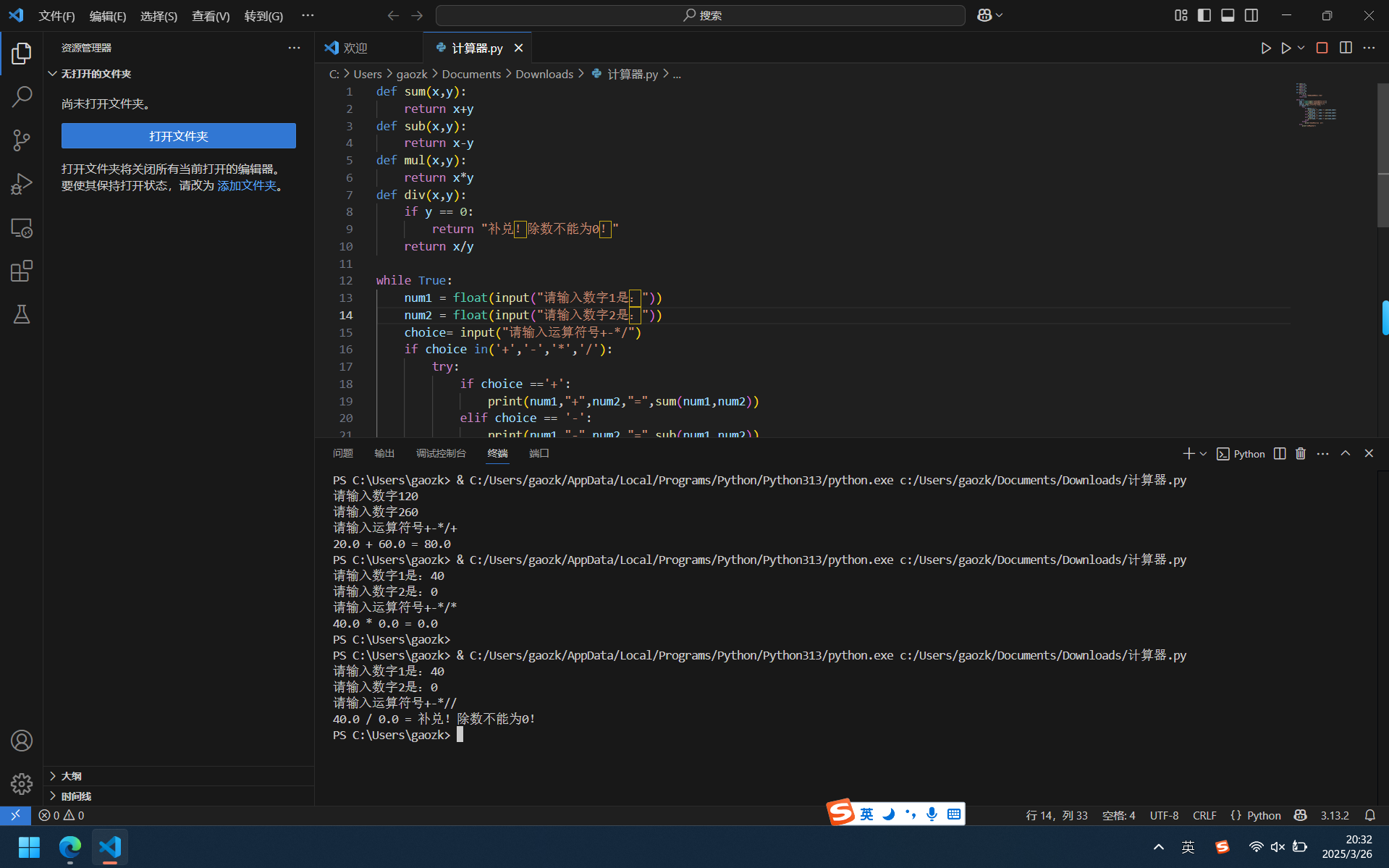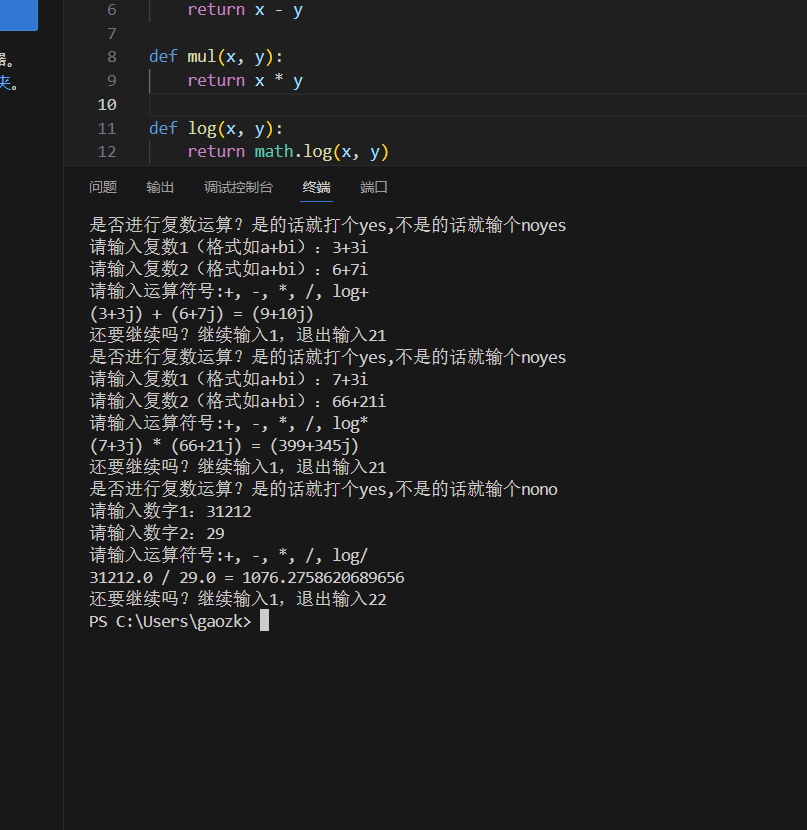 (三)将计算器功能从整数拓展到复数,程序先判断是整数还是复数。注意复数是a+bj而不是a+bi(这点与数学区分开来)