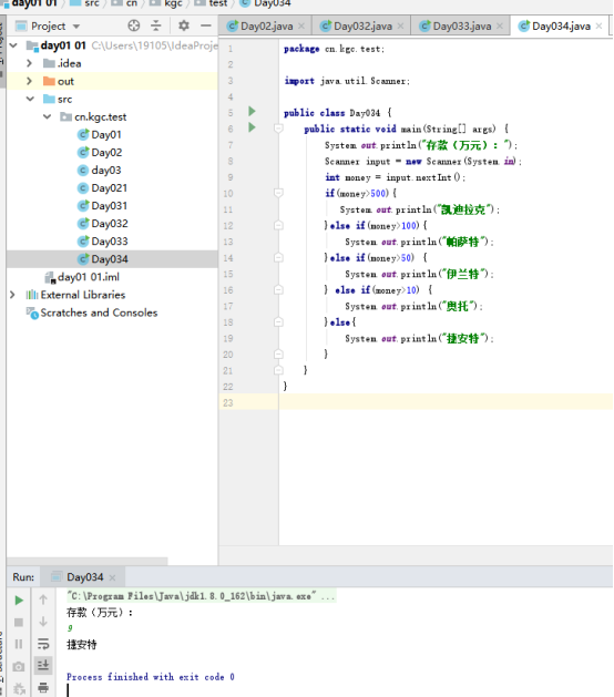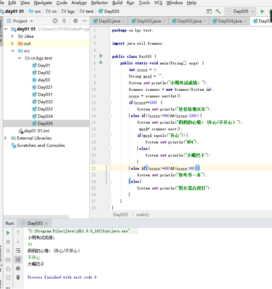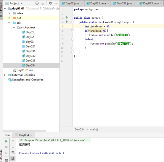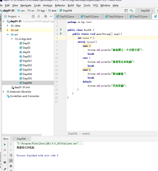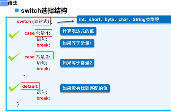定义:当条件中存在多场景需要选择的情况下,可以使用switch(等值条件)