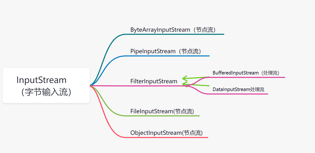 节点流:从或向一个特定的地方(节点)读写数据;如FileInputStream;