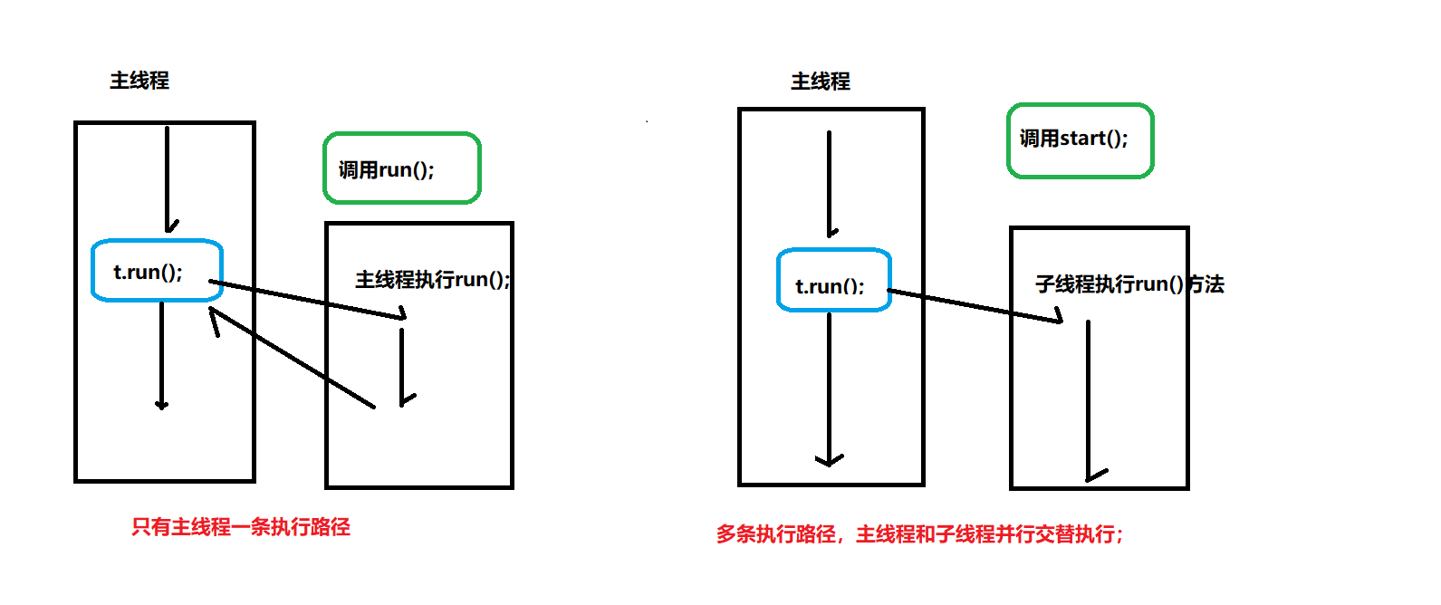 普通方法调用和多线程: