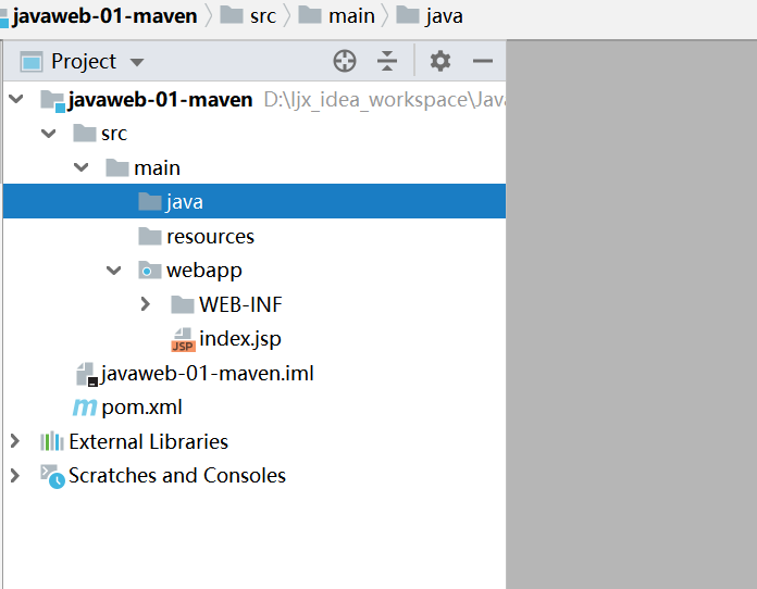 一个干净的Maven项目创建完成: