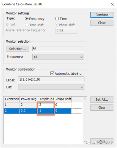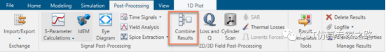 如果我们把1单元和2单元同时激励,则有源S参数就产生了。这里我们可以在两个端口算完之后用Combine Result的方式合成。如下图所示: