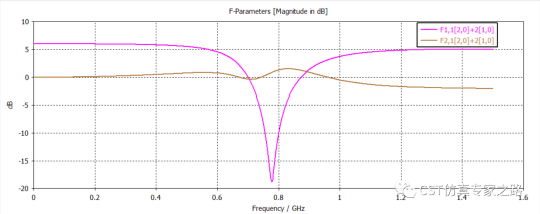 这里我们1端口激励幅度是2,相位是0,1端口的平均功率是0.5*2^2=2w。二端口激励服务是1,相位是0,2端口的平均功率是0.5w。此时得到有源S参数的S1,1[2,0]+2[1,0]和S2,1[2,0]+2[1,0],如下图所示: