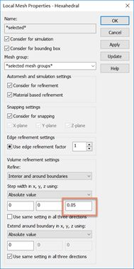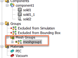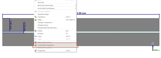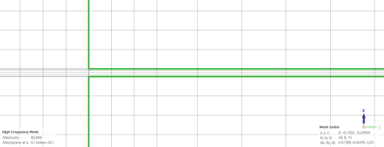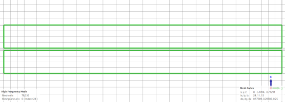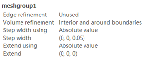 这样就在中间加了一根网格线了,0.05mm一根线,0.1mm就会有两根线。创建了局部网格会在导航栏下看到一个Meshgroup。点击这个可以在主视图中看到这个meshgroup的信息,如下图所示:这是一个对Z方向加密网格的group,如下图所示: