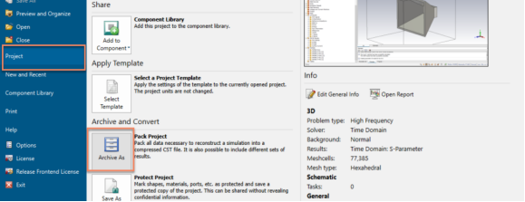 那如果我要把CST软件的结果打包,只需要选择,file-Archive AS,如下图所示: