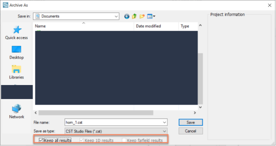 勾选需要的结果,比如单单保存1d结果,或者保存远场结果,这里我们选择Keep all result,文件设为horn_1.cst,如下图所示: