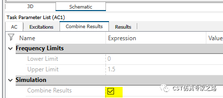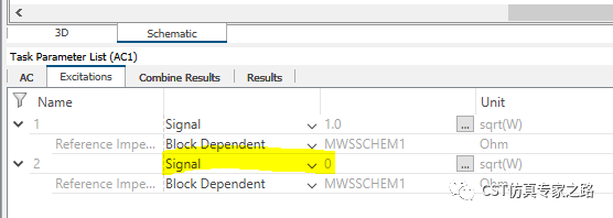 因为要看具有匹配电路的天线效率,所以需要AC Task。很多同学不知道CST哪里改激励功率,其实就是这里AC Task来改,不需要在三维里面设置,因为三维那边用0.5W归一化,然后电路里研究不同的激励功率,好处就是三维那边只跑一次就可以。