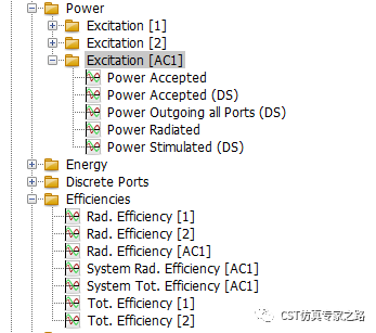 多天线系统的系统总功率:System Tot. Efficiency [AC] = Power Radiated / Power Stimulated [DS]