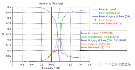 Pstimulated 是激励功率,就是CST中的端口,默认是0.5W RMS,峰值是1W。