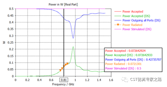 可见这些效率值都是用辐射功率为分子,就是除以谁的问题,而且三个的效率值大小是递减的。其中辐射功率是纯三维天线的属性,系统总功率是三维加上匹配电路的总属性,这两个都好理解,那么什么是系统辐射功率?等效的问法就是,什么是Power Accepted (DS)?