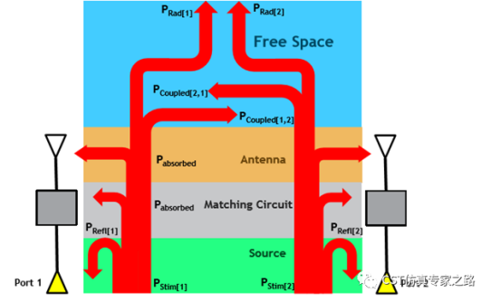 所以即使端口2信号为零,其激励内阻和负载时的阻抗都相同(都是block dependent),但作为多天线辐射系统的一部分,二者是有显著差别的,端口2零激励,有吸收功率的效果,所以天线系统的接受功率小了,系统辐射功率就提高了。要根据实际工作状态来决定用哪个设置,比如端口1激励的时候,端口2是接收状态,还是负载接地,得到的就是不同的系统辐射效率。