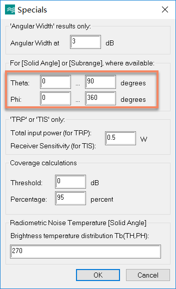 打开Special选项,如果是上半球空间,我们根据全局坐标系,将theta范围选择0:90。上半空间设置如下图所示: