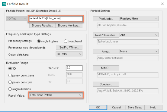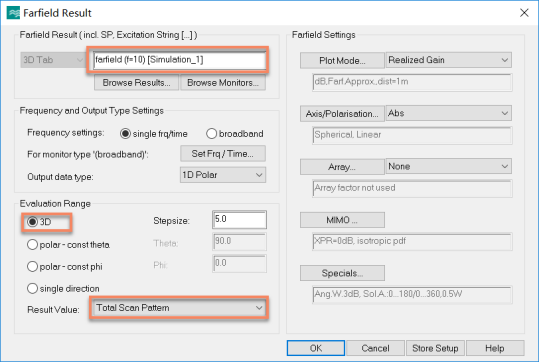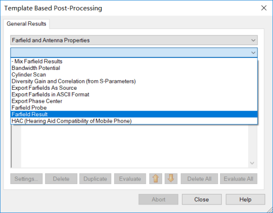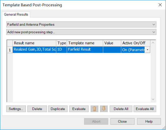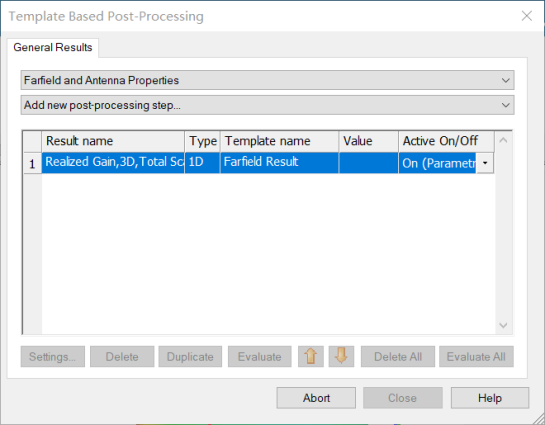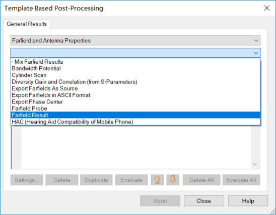 打开Farfield Result后处理(Post-Processing)模版,如下图所示设置: