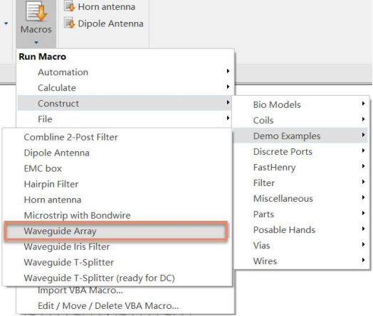 建一个新的仿真文件,并点击如下创建波导阵列的宏,如下图所示: