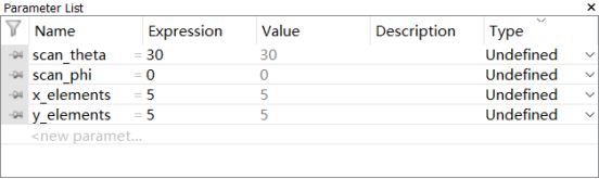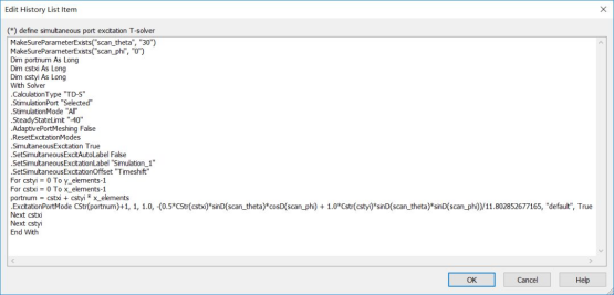 根据histroy list的语句可见,每个端口的激励的Time shift (Phase shift)都和Scan_theta;Scan_phi相关,如下图所示: