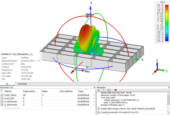 这里点击update,可以得到整个阵列指向Scan_theta=30;Scan_phi=0的结果,如下图所示: