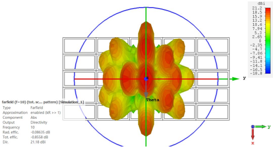 通过以上CST软件会对不同的theta和phi进行扫描,并将所有的在farfield(f=10)simulation_1激励下的结果合成一张total scan的方向图。