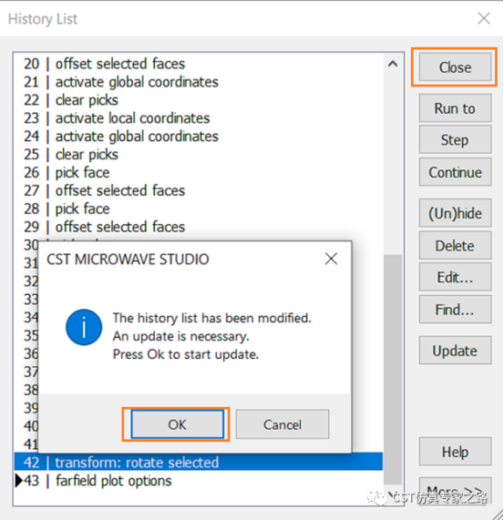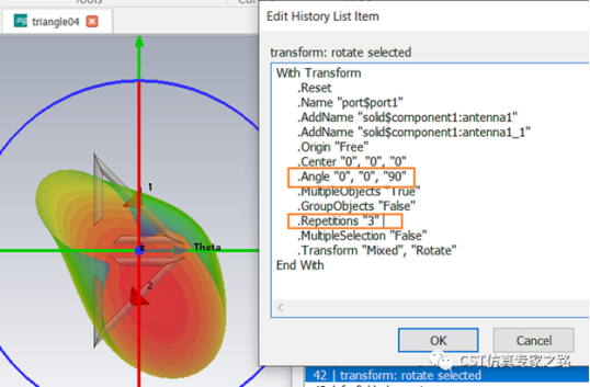 文件另存,将历史树中旋转天线90度改成180,关闭历史树。