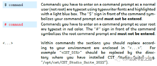 之前有内容介绍过如何安装CST的windows版本,对于想在linux系统使用CST的用户,今天我们介绍如何安装CST的Linux版本。1)使用root安装(如果使用普通用户,那么软件仅对该用户可用),使用user(非root)运行CST,指导书中的命令说明:
