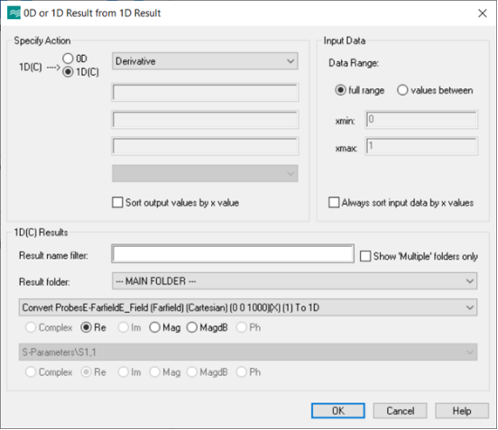 下一步对相位进行求导,后处理General1D -> 0D or 1D Result from 1D Result, 1D Results 选择刚刚Convert 结果。