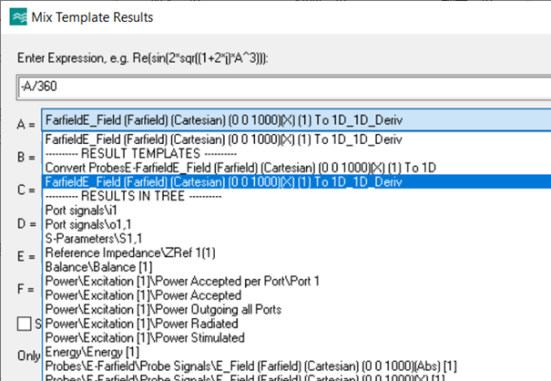 下一步计算群延时,后处理General1D -> Mix Template Results, 输入-A/360,然后A设为刚刚的导数计算结果。