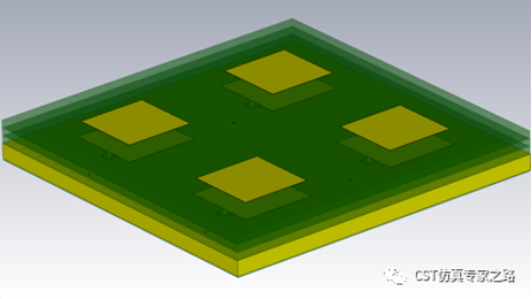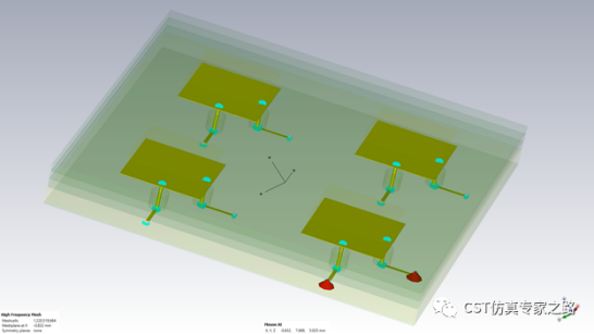 下面以一个2x2的毫米波贴片天线为例,背面有馈电线,8个端口正交极化。